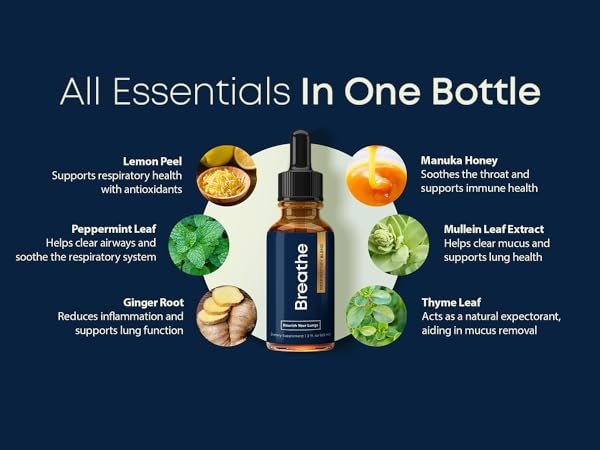 Each drop of Breathe™ delivers a powerful blend of natural ingredients, carefully selected to detox your lungs, clear your airways, and support smooth, easy breathing. Check out the stars of this formula: